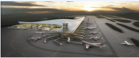 长春龙嘉国际机场二期扩建项目T2航站楼及高架桥工程位于吉林省长春龙嘉国际机场T1航站楼东侧,占地面积55600平方米,由T2航站楼楼、T1-T2钢连廊、机坪塔台、高架桥四部分组成,其中T2航站楼128111㎡,高架桥19540㎡,建筑平面呈"人”字型布置,由主楼和东、南、西三个指廓以及连廊组成。