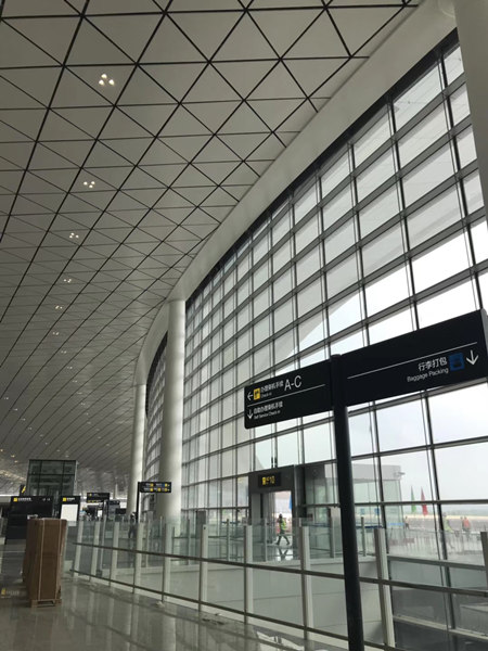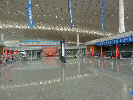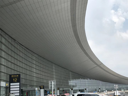 “T2航站楼内外装饰工程建筑总面积约92294㎡,工期455日历天。本项目是由公司总工程师万亮彬组建项目班子参与管理施工,自2016年6月进场,严格控制工程质量,不断完善施工及方案,确保工程质量优良。尤其是幕墙工程采用国内首例双拉索式玻璃幕墙新工艺,以争创“鲁班奖”为目标,打造“特色+品质”工程。这将成为“美华”继“武汉天河机场”项目之后又一机场代表作品。